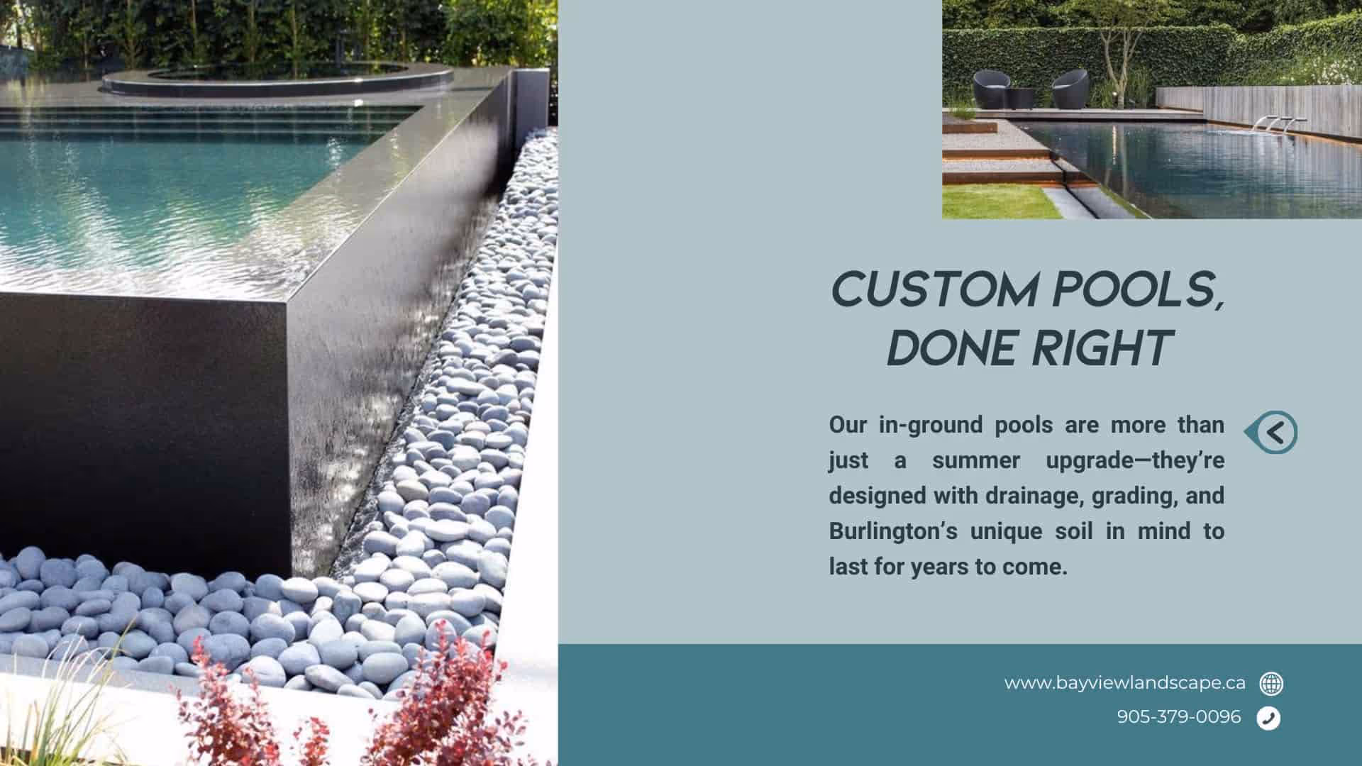 If you’re planning a new landscaping project in Burlington or Oakville, we’d love to hear from you. Whether you want a new pool, a low-maintenance garden, or just a better space to relax—we can help make it happen.